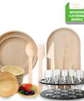 440-Piece Wedding Catering Premium Bundle | Palm Leaf Plates, Bowls, Platters, Wooden Cutlery, & Champagne Tray Set | (100 persons)