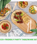 Host the perfect eco-conscious event with our comprehensive 440-piece party bundle, featuring premium palm leaf plates, bowls, platters, sustainable wooden cutlery, and pinewood serving boats.